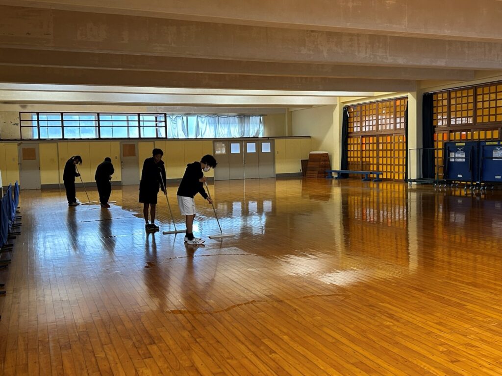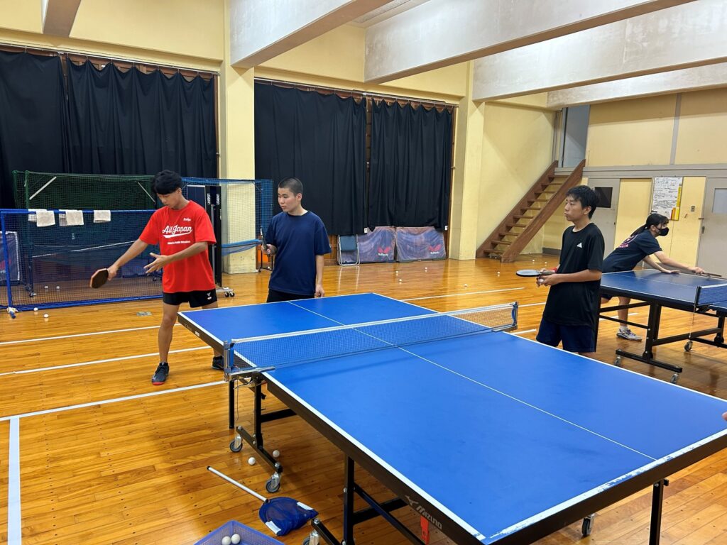 スポーツエキスパートのコーチによるレッスン、臨時コーチによるレッスンを通じて、部員の競技力は着実に向上しています。新人戦シングルスでは、女子の斉藤がベスト32で県大会進出を決めました。おめでとうございます。男子は1年生コンビの松永と須藤がベスト64に残りましたが、シード選手の厚い壁に阻まれる形となりました。多くの選手が競技力の向上が見込まれ、来年の大きな飛躍に期待したいものです。秋以降は練習試合の経験を重ね、年末には静岡県卓球協会主催の強化練習会に多くの部員が参加しました。コーチにマンツーマンのレッスンをうけて、日頃の自分の課題を明確にして今後の方向性を確認することができました。年内最後の練習日には、日頃から使用しているフロアに公式ワックスを丁寧に塗布して、活動を終えました。2026年も引き続き西高卓球部に注目してください。