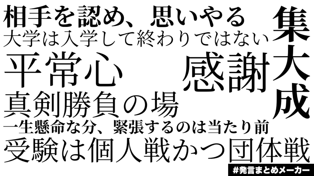 令和8年1月16日(金)4限に大学入学共通テスト事前指導がありました。1月17日(土)18日(日)に行われる大学入学共通テストを受験する3年生が集まり、校長先生、進路指導主事、学年主任の先生より受験上の注意や激励の言葉が贈られました(先生方の言葉を1枚の画像にまとめてみました)。大学受験は様々な形がありますが、大学入学共通テストがひとつの大きな山場であることは間違いありません。受験生にとってまさに【集大成】です。外部会場での受験で、一人ひとり受験科目や時間も異なり、不安要素はあると思います。しかし、静岡西高生として胸を張って臨んでください。応援しています。