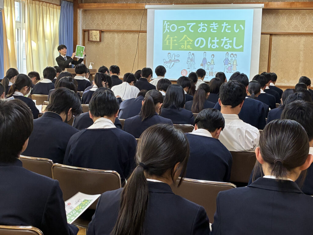 令和8年1月19日(月)6限に年金講話が行われました。18歳成年で金融に関する様々な契約を結べるようになり、2022年より高校生に金融教育が必修となりました。社会保障の一つとして年金があることは学びますが、まだ若い高校生が自分事として年金を考える機会はこれまであまりなかったかもしれません。日本年金機構静岡年金事務所より講師の方をお招きし、詳しいお話を伺うことができました。高校卒業後は、社会の一員として扱われます。それは、進学しても同じことです。年金について具体的に仕組みを学び、将来の担い手としてこれからの日本と自身の人生について考える良い機会となりました。