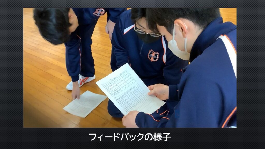 物理の授業では3年生の物理選択者が、体育の授業で取り出したデータの分析とフィードバックの作成を行い、後日スポーツコースの生徒に対してフィードバックを行いました。