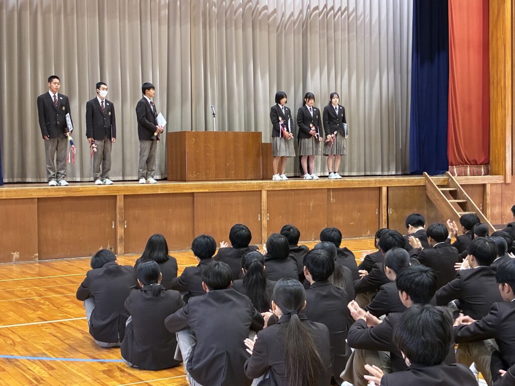 令和8年3月19日(木)、3学期末表彰式が行われました。日頃の部活動や授業、個人的な取り組みの成果を遺憾なく発揮された皆さん、改めておめでとうございます。これからのご活躍も楽しみにしています。西高全員で応援しています。