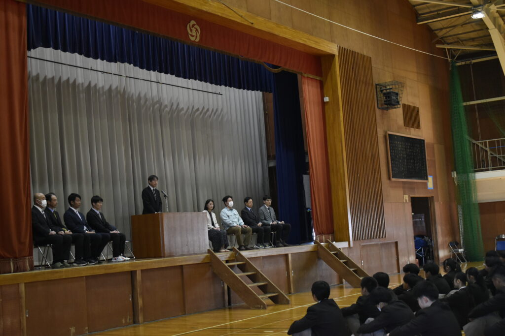 令和8年4月8日(水)、新任式および一学期始業式を行いました。新任式では、新しく赴任された教職員の紹介がありました。教頭先生からは「生徒の皆さんにとって良き伴走者になりたい」という言葉がありました。
