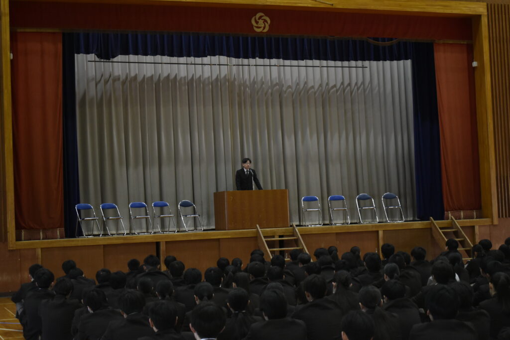 始業式では、校長先生より2・3年生に向けて「本校の顔として伝統や校風を守りながら、様々な経験を積み重ね、進路実現を目指してほしい」「心を磨き、育てよう」とお話がありました。