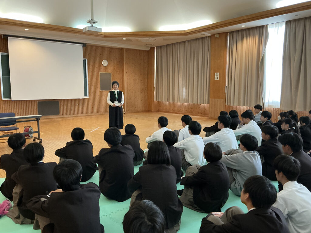 令和8年4月13日(月)、1年生を対象に学校生活オリエンテーションを実施しました。出欠席や授業、人間関係、進路、悩み相談などについて、担当教員に加え、スクールカウンセラーからも詳しい説明がありました。