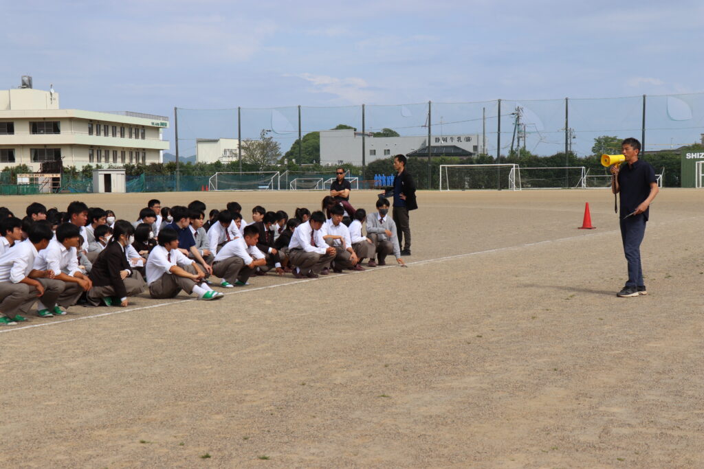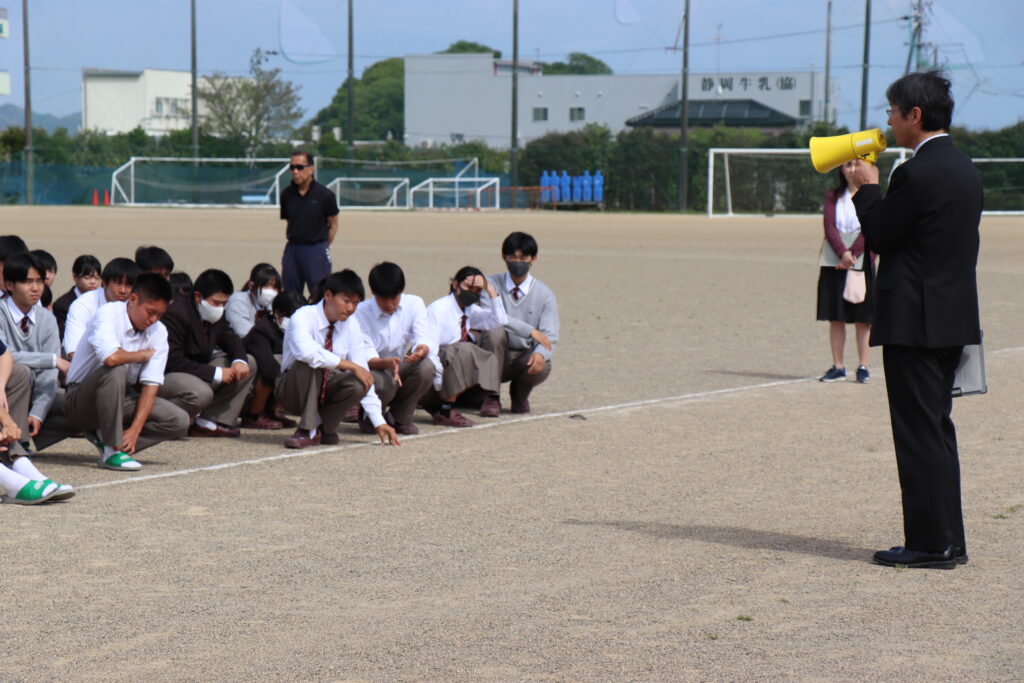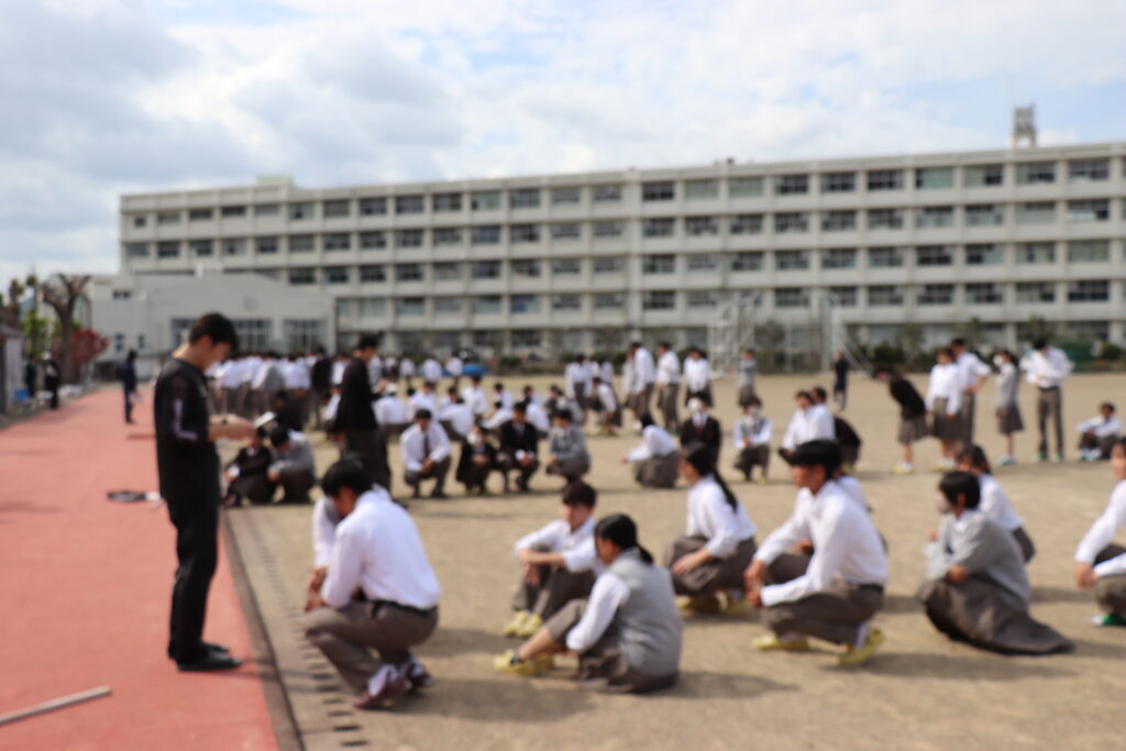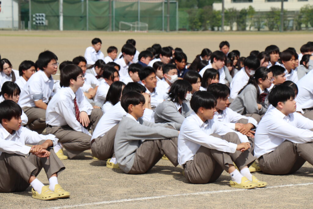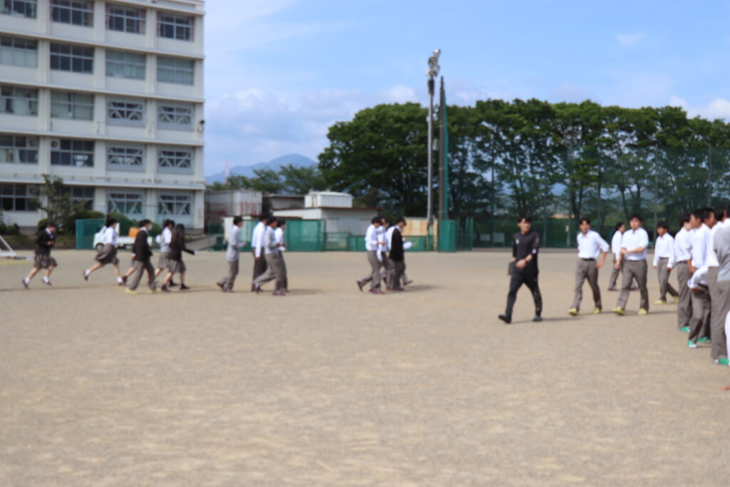 令和8年4月20日(月)6限に、今年度最初の防災訓練および地区会を実施しました。今回は地震発生を想定した抜き打ち訓練でしたが、生徒たちは校内放送の指示に従い、机の下に身を隠した後、落ち着いて速やかにグラウンドへ避難することができました。その後、点呼・報告を行い、教頭先生より講評をいただきました。
