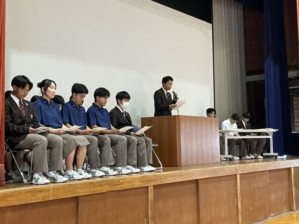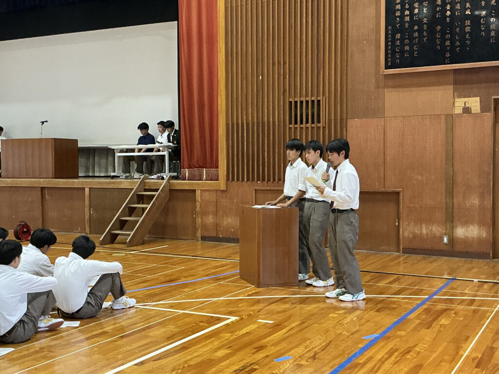 令和8年4月22日(水)7限に前期生徒総会が行われました。生徒会予算、生徒会本部・各専門委員会の活動方針、生徒会規約改定の決議を取りました。今回の総会で共有された目標やスローガンをもとに、一人ひとりが主体的に行動し、より良い学校づくりにつなげていくことができることを期待したいです。